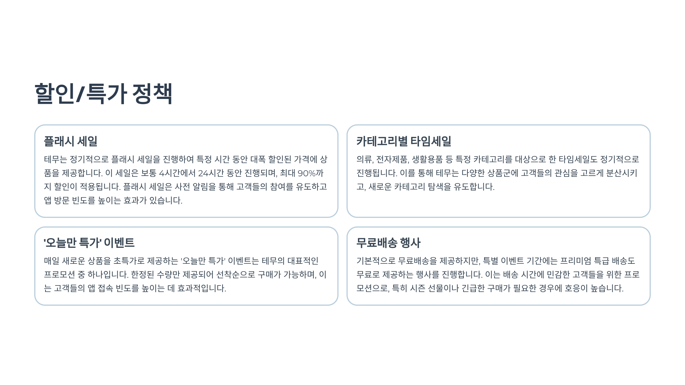 | 첫 구매 쿠폰 활용 | 첫 주문 시 최대 50% 할인 가능 |