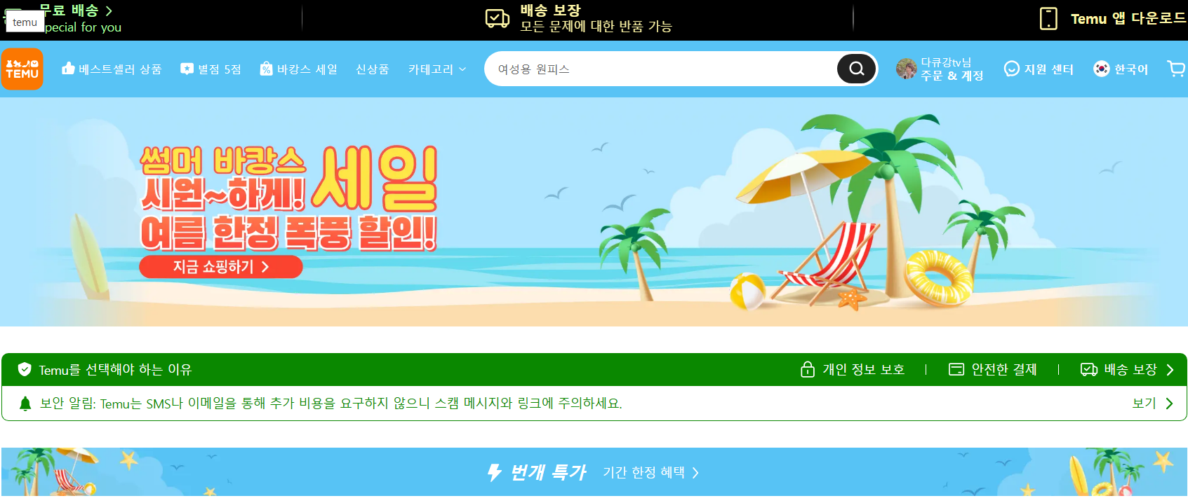 브랜드 자체는 PDD Holdings라는 글로벌 기업 소속이라 어느 정도 신뢰할 수 있지만, 판매자는 개별 셀러라서 주의가 필요해요. 테무 쇼핑몰 바로가기