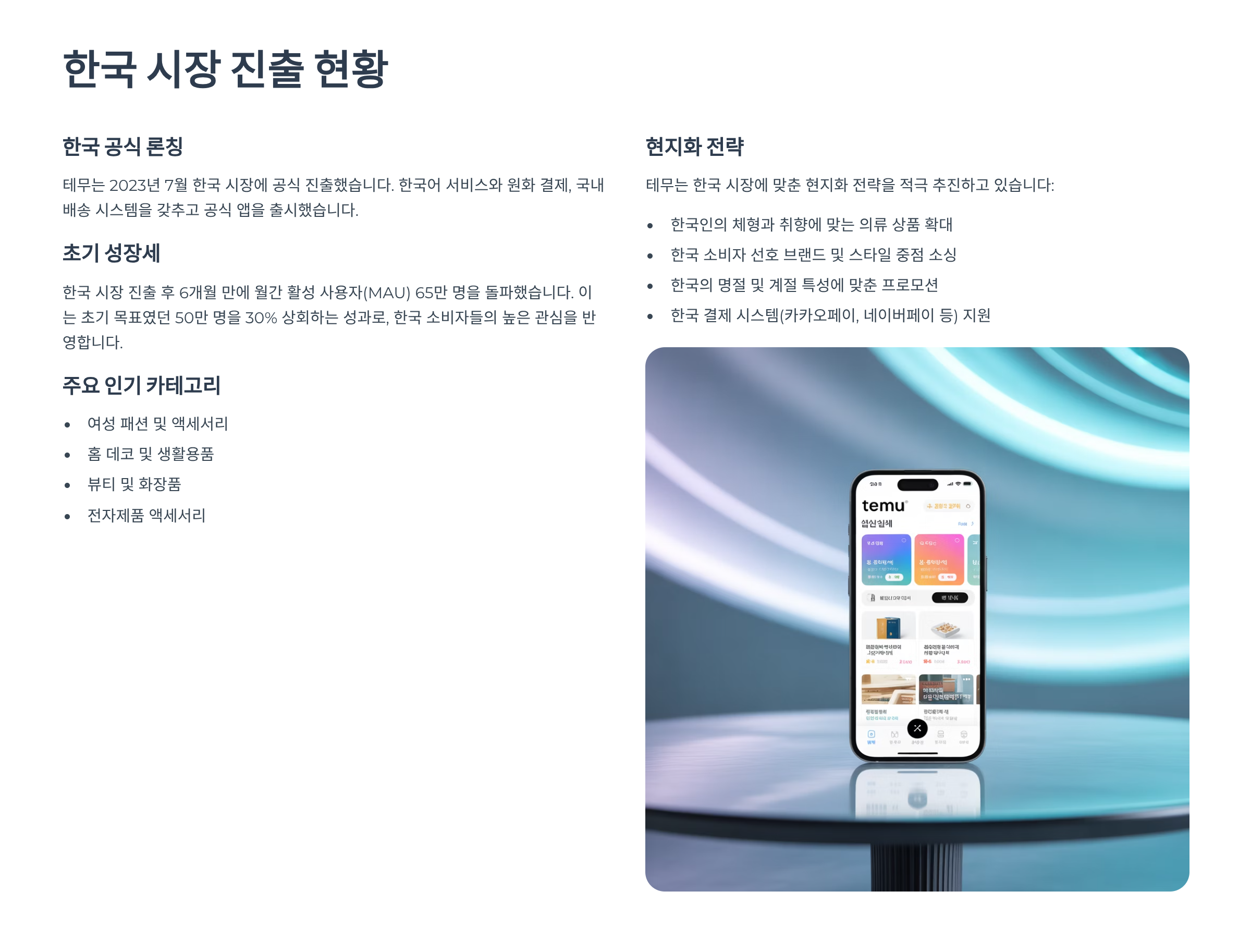 네, Temu는 한국어 앱과 웹사이트 모두 지원하며, 배송도 문제없이 진행됩니다.